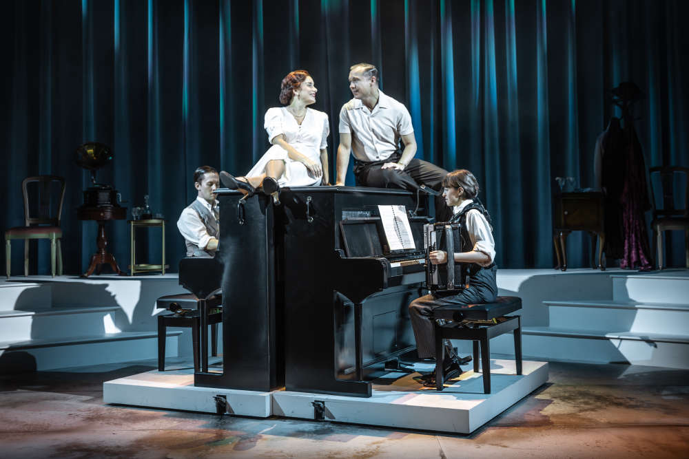 Rebecca Trehearn as Gertie Lawrence, Joey Hickman & Michaela Murphy as Ensemble and Musicians, Gary Tushaw as Noël Coward