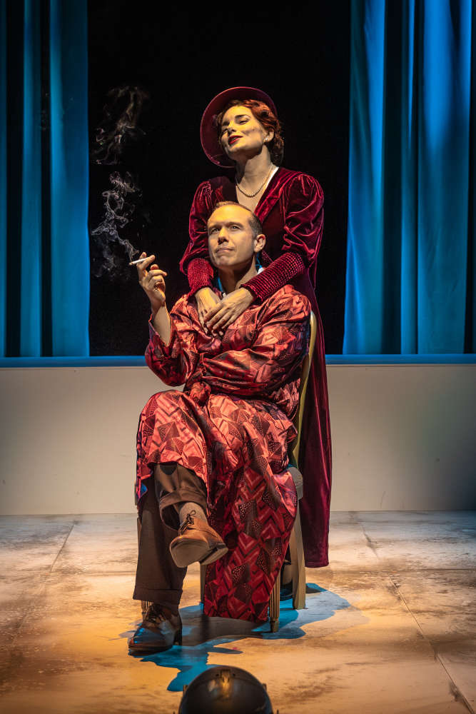 The show is structured like a biography, Noël and Gertie telling the audience an account of their lives, intertwining together. The dialogue draws heavily on Coward’s own words, including his letters and diaries, and the songs included throughout are taken from his extensive discography of work spanning a storied life.
