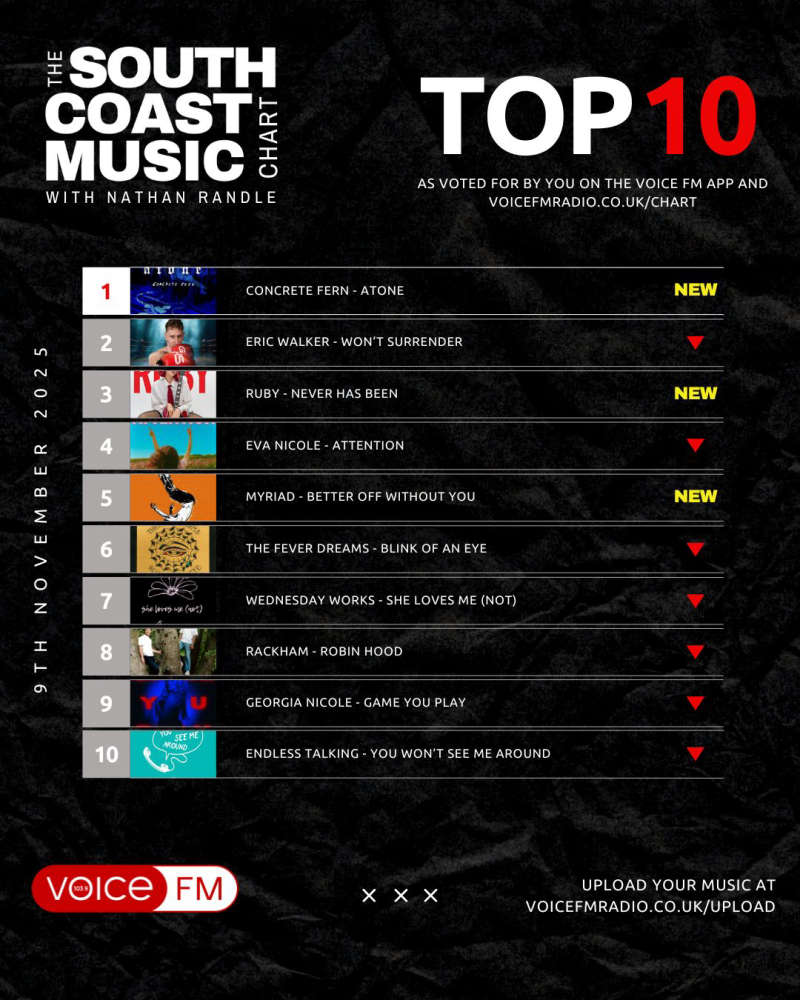 The vote has closed - tune in at 5pm on Sunday to hear Nathan Randle announce who is No.1 in Voice FM's South Coast Music Chart..